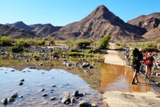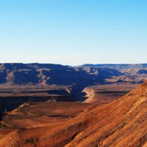 Fish River Canyon on suuruselt teine kanjon maailmas, ulatudes Seeheimist kuni Oranje jõeni. Kanjon moodustab 180 kilomeetri pikkuse piiri Namiibia ning Lõuna-Aafrika vahel. Matkarada, kus seikleme, kasutab sellest „kõigest“ 85 kilomeetrist juppi, mis saab alguse vaateplatvormilt Hobase lähedalt ning leiab õnneliku lõpu Ai-Ais kuumaveeallikate juures. Terve matkaaja saadavad meid päike, tavatu kivine ilu, veel päike, kõrval voolav äge Fish River jõgi, veel päike, kohalik floora ja fauna ning jälle päike. Rada on avatud vaid 1. maist 15. septembrini, kuna muul ajal on siin kas ohtlikult kuum (kuni +48°C) või on võimalikud üleujutused. Kanjonis matkamine on närvekõditav ja meelierutav kogemus.