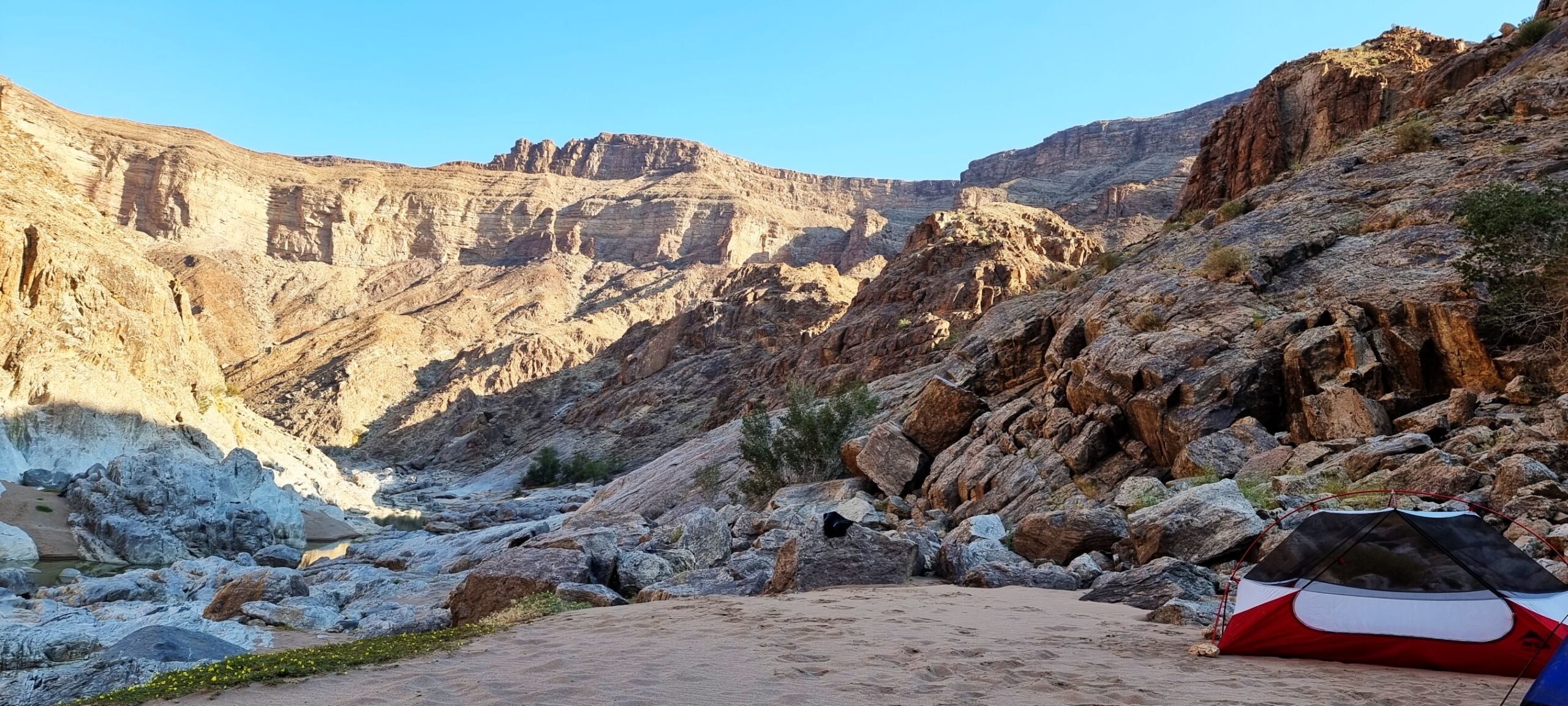 Kolmas matkapäev. Sarnaselt eelmisega: mööda kanjoni põhja, kuid korralike tõusude ja langustega. Maastik ja tee jällegi üsna vahelduv. Vaheldudes kord jõeliiva, kaljude ja kivimürakatega, aga pakkudes ka tõelist kõrbevälja. Teekonnale jäävad nii mõnedki looduslikult võimsad vaatamisväärsused: Sentinel Rock, Sphinx Rock, jt. Kuigi loodus on siin äärmuslikult karm, on siin sellest hoolimata üllatavalt rikkalik loomariik. Hea õnne korral kohtame paaviane (ettevaatust toiduga!), kudusid (antiloobid), sebrasid. Ka sisalikke, linde ja erinevaid putukaid. Õhtul seame ennast sisse järjekordsesse telklaagrisse ning valmistame maitsva matkaõhtusöögi.