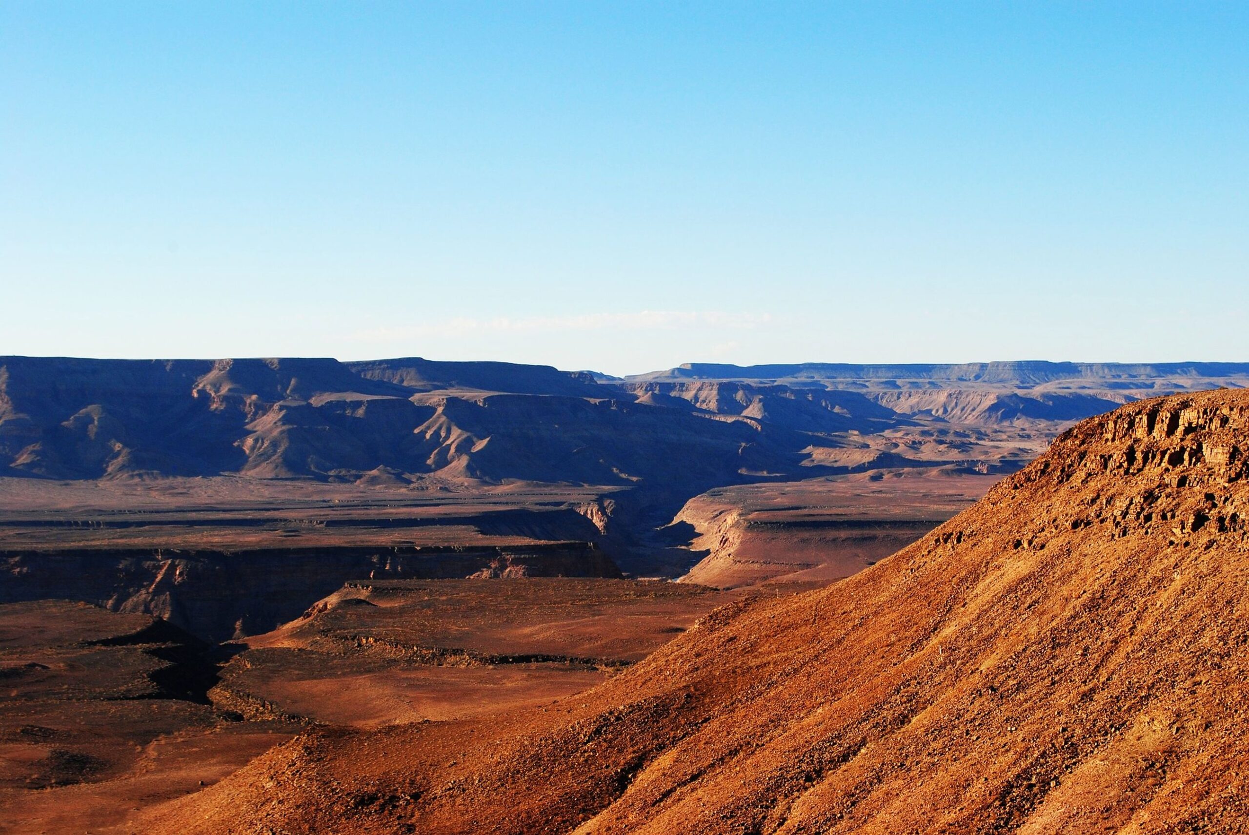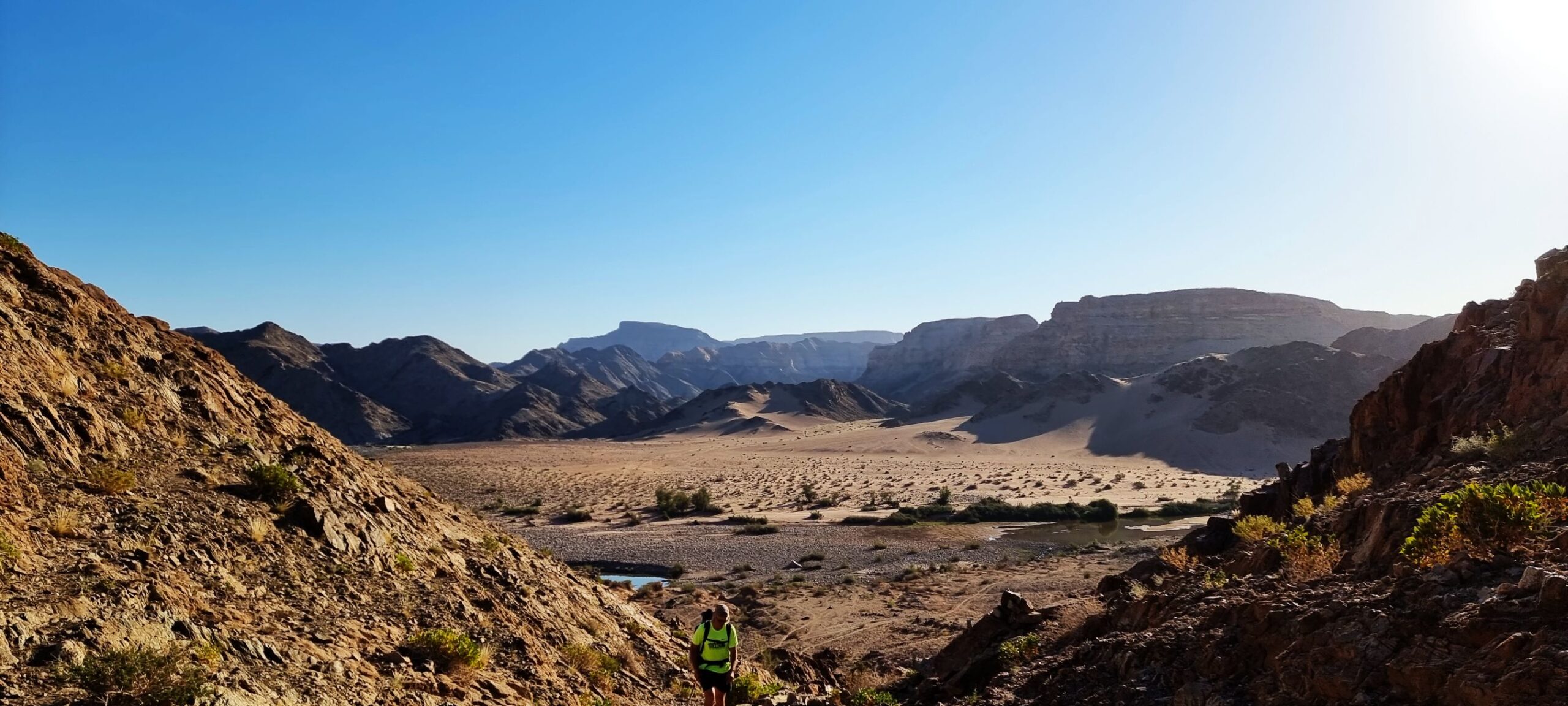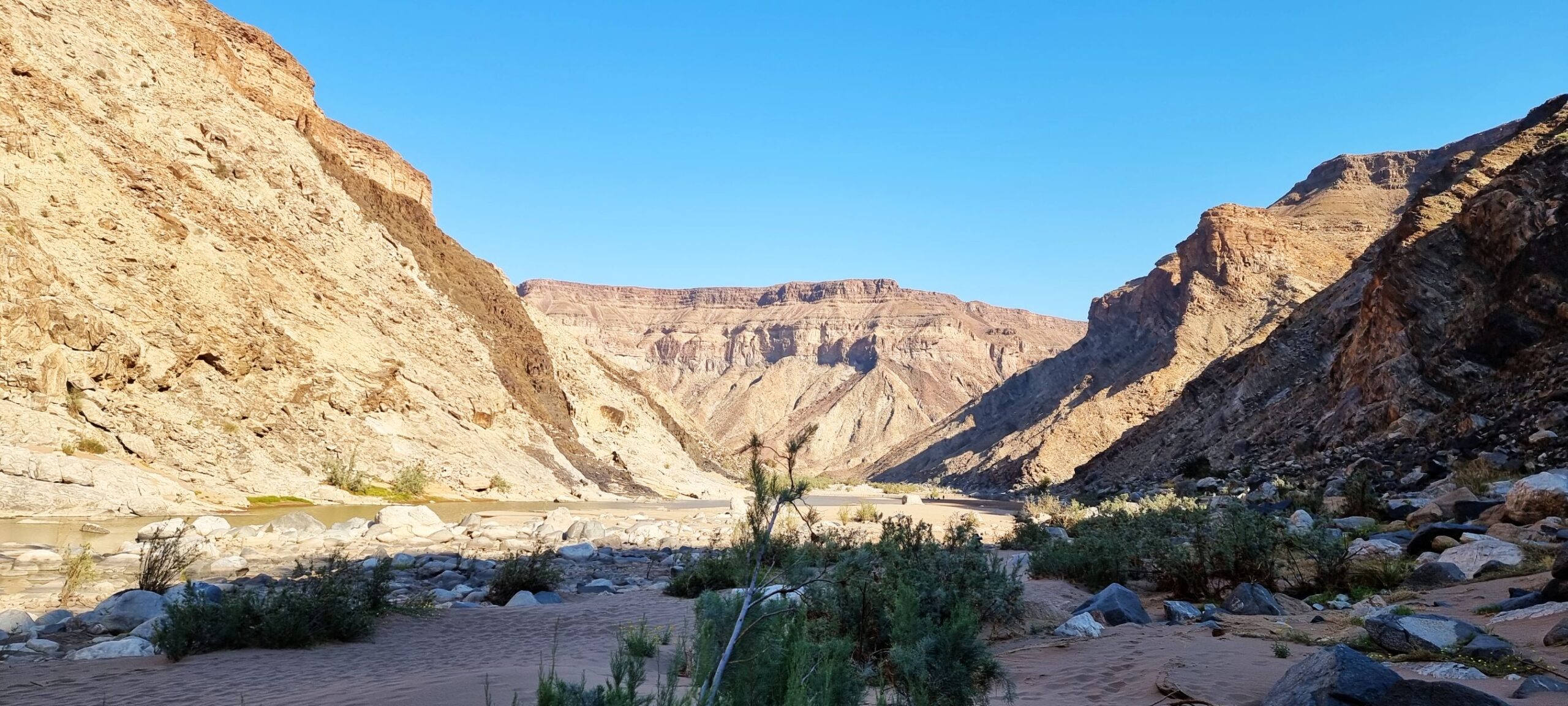 Fish River Canyon on suuruselt teine kanjon maailmas, ulatudes Seeheimist kuni Oranje jõeni. Kanjon moodustab 180 kilomeetri pikkuse piiri Namiibia ning Lõuna-Aafrika vahel. Matkarada, kus seikleme, kasutab sellest „kõigest“ 85 kilomeetrist juppi, mis saab alguse vaateplatvormilt Hobase lähedalt ning leiab õnneliku lõpu Ai-Ais kuumaveeallikate juures. Terve matkaaja saadavad meid päike, tavatu kivine ilu, veel päike, kõrval voolav äge Fish River jõgi, veel päike, kohalik floora ja fauna ning jälle päike. Rada on avatud vaid 1. maist 15. septembrini, kuna muul ajal on siin kas ohtlikult kuum (kuni +48°C) või on võimalikud üleujutused. Kanjonis matkamine on närvekõditav ja meelierutav kogemus.