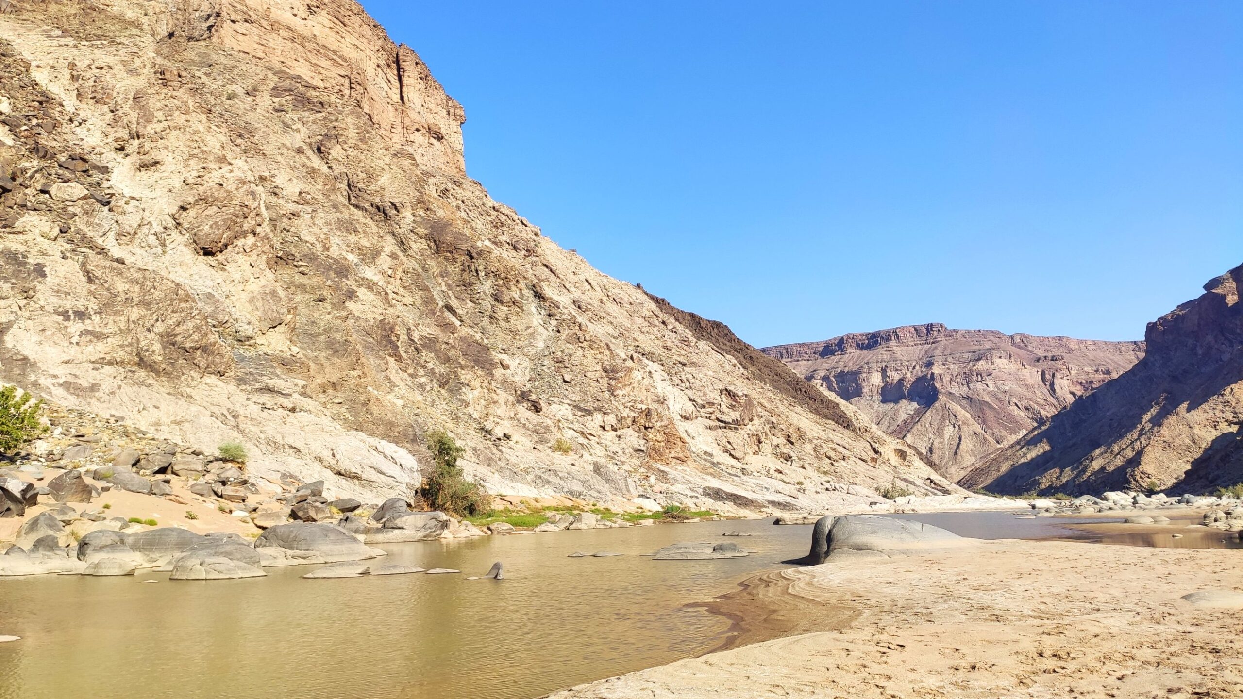 Kosutava hommikusöögi järel asume teele. Taaskord on kavas kulgemine mööda kanjoni põhja, kuid muudame selle nii mõneski kohas lühemaks, ületades mäerinnakuid ja kaljunukke. Sellised otseteed teevad küll tee lühemaks, kuid samas raskemaks, kuna tekitame oma teele „mägesid“. Selliselt on ka maastik vaheldusrikkam. Kogu seda teed ilmestavad ebamaised loodusvormid: hiigelkivimürakad, sürreaalsed kaljuvormid. Seda siis maailma sügavuselt teises kanjonis. Mööda kanjonit lõunasse edasi liikudes muutub vesi järk-järgult haruldasemaks ning suplusvõimalused seda kasinamks. Tänasele päevateekonnale jääb üks huvitav vaatamisväärsus: leitnant Thilo von Trotha haud. Nimetatud leitnant leidis siin oma viimse puhkepaiga, kui pidas rahuläbirääkimisi kohalike hõimudega. Teda tulistati selja tagant, kuna hõimud arvasid et need läbirääkimised on vaid suitsukatteks plaanitavale rünnakule.