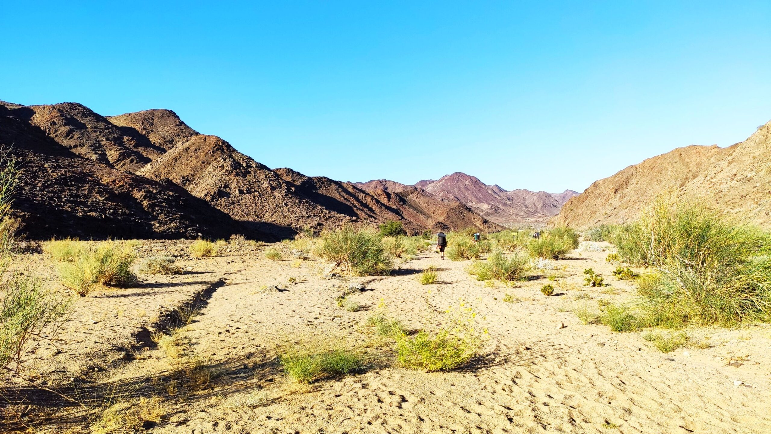 Sööme korraliku matkahommikusöögi ning asume taas teele. Tänane päev möödub kanjonipõhjas matkates. Teekond kulgeb küll kanjoni põhjas, kuid nii tõusu kui ka laskumist koguneb sell päeval korralikult. Ei ole ka teekond lihtne: kulgedes kohati mööda liiva ning esineb ka kõvasti turnimist kaljudel ja kividel. Meie tänasele teekonnale jäävad ka Palm Springsi väävlised kuumaveeallikad, kus saame oma väsinud ihuliikmeid leotada. Sõltuvalt veetaseme olukorrast õnnestub meil ennast ka looduslikes jõesilmades värskendada. Õhtul seame ennast sisse järjekordsesse telklaagrisse ning valmistame maitsva matkaõhtusöögi.
