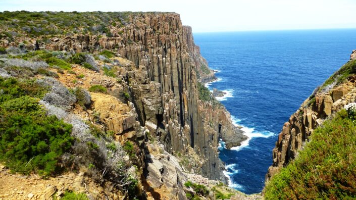 Title/Author/License: tasmania-Columnar_jointing_in_dolerite_at_Cape_Raoul- Geoff Derrin- -Wikimedia Commons CC BY-SA 4.0